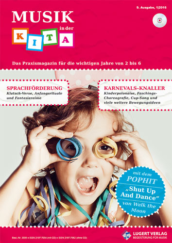 Mit der ersten Ausgabe von „Musik in der Kita“ im Jahr 2016 bringen Sie mal so richtig Schwung in die Kita. Neben zahlreichen Bewegungs-Ideen, dem Pophit „Shut Up And Dance“ und einer Cups-Choreografie bietet dieses Heft viel Praxismaterial zu den Themen „Sprachförderung“, „Entspannung“ und „Rhythmusschulung“. Natürlich dürfen auch ein paar Karnevals-Knaller nicht fehlen: Pünktlich zur Faschingszeit bekommen Sie hier die ultimative Anleitung zur „Kindergarten-Faschingsnarren-Polonaise“.