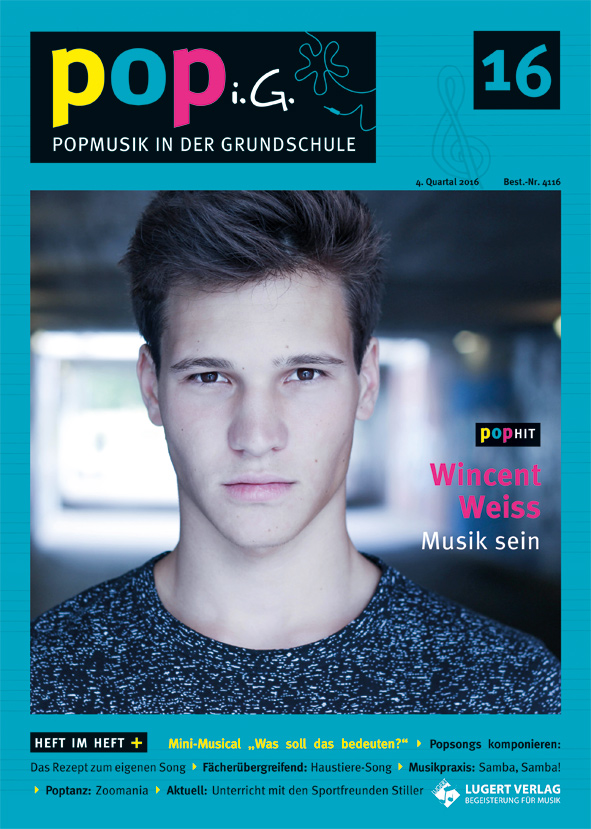 „POPi.G. – Popmusik in der Grundschule“ behandelt die aktuelle Musik, die den Schülern gefällt. Mit guten Arrangements, flotten Choreografien und durchdachten Arbeitsblättern gelingt es Ihnen, Schüler mit ihrer Musik zu begeistern. Hier können Sie ein Prüfpaket der aktuellen Ausgabe bestellen!