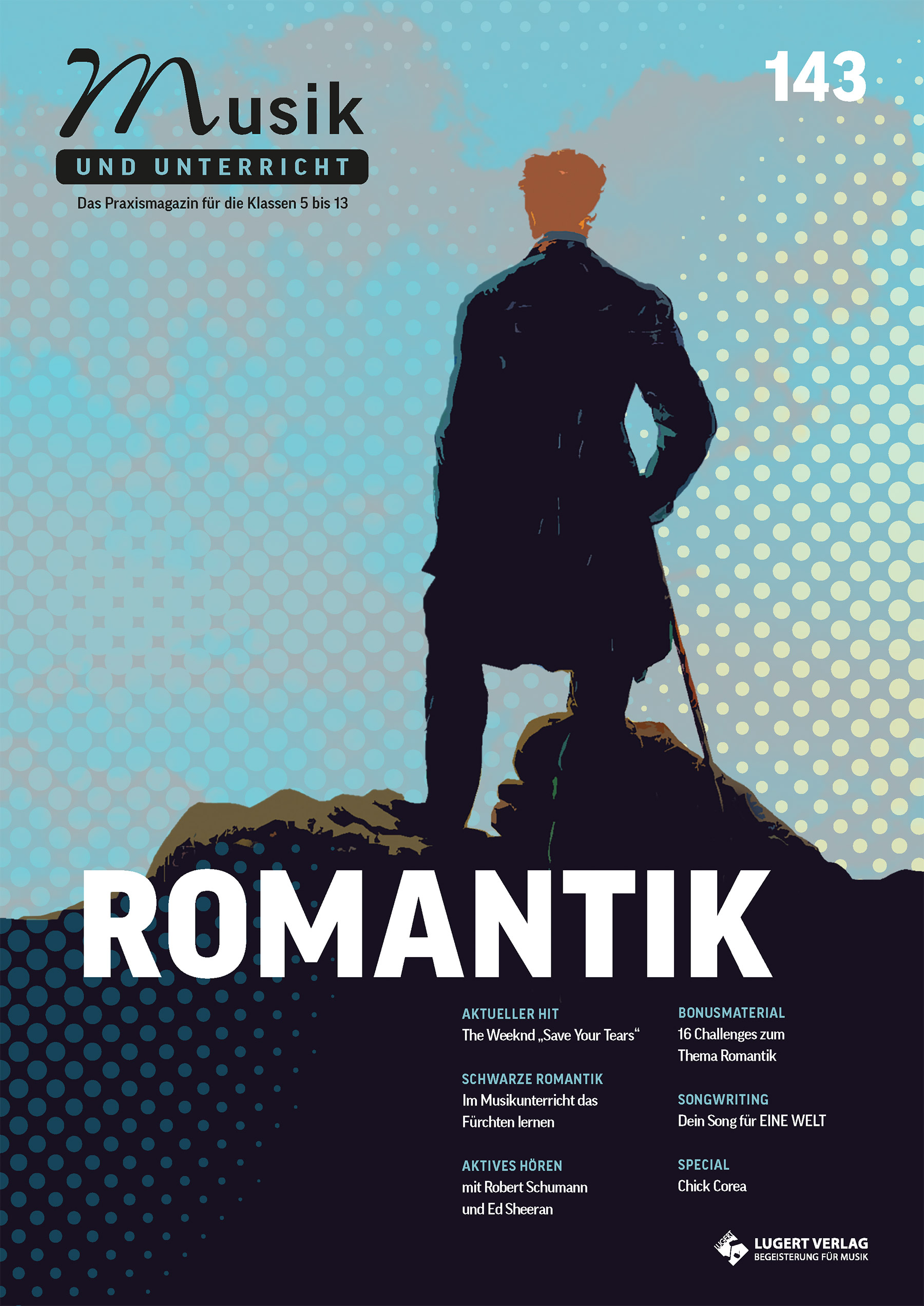 Diese Ausgabe beleuchtet das Thema „Romantik“ fernab von der nüchternen Abhandlung der historischen Epoche. Mit einer schaurigen Reise in die schwarze Romantik mit dazugehörigem Filmprojekt, der Betrachtung sinfonischer Gestaltungselemente in Popsongs oder einem Vergleich zwischen Ed Sheeran und Robert Schumann bringen Sie Ihren Schüler*innen das vermeintlich verstaubte Thema näher. Darüber hinaus erhalten Sie mit dieser Ausgabe Klassenmusizier-Material zum Hit „Save Your Tears”, Unterrichtseinheiten zum Thema „Songwriting” und vieles mehr. Im Ordner „Digitales Klassenzimmer“ finden Sie wie gewohnt Arbeitsmaterialien im Word-Format, die Sie für die Lernsituation Ihrer Schüler*innen jederzeit anpassen können.