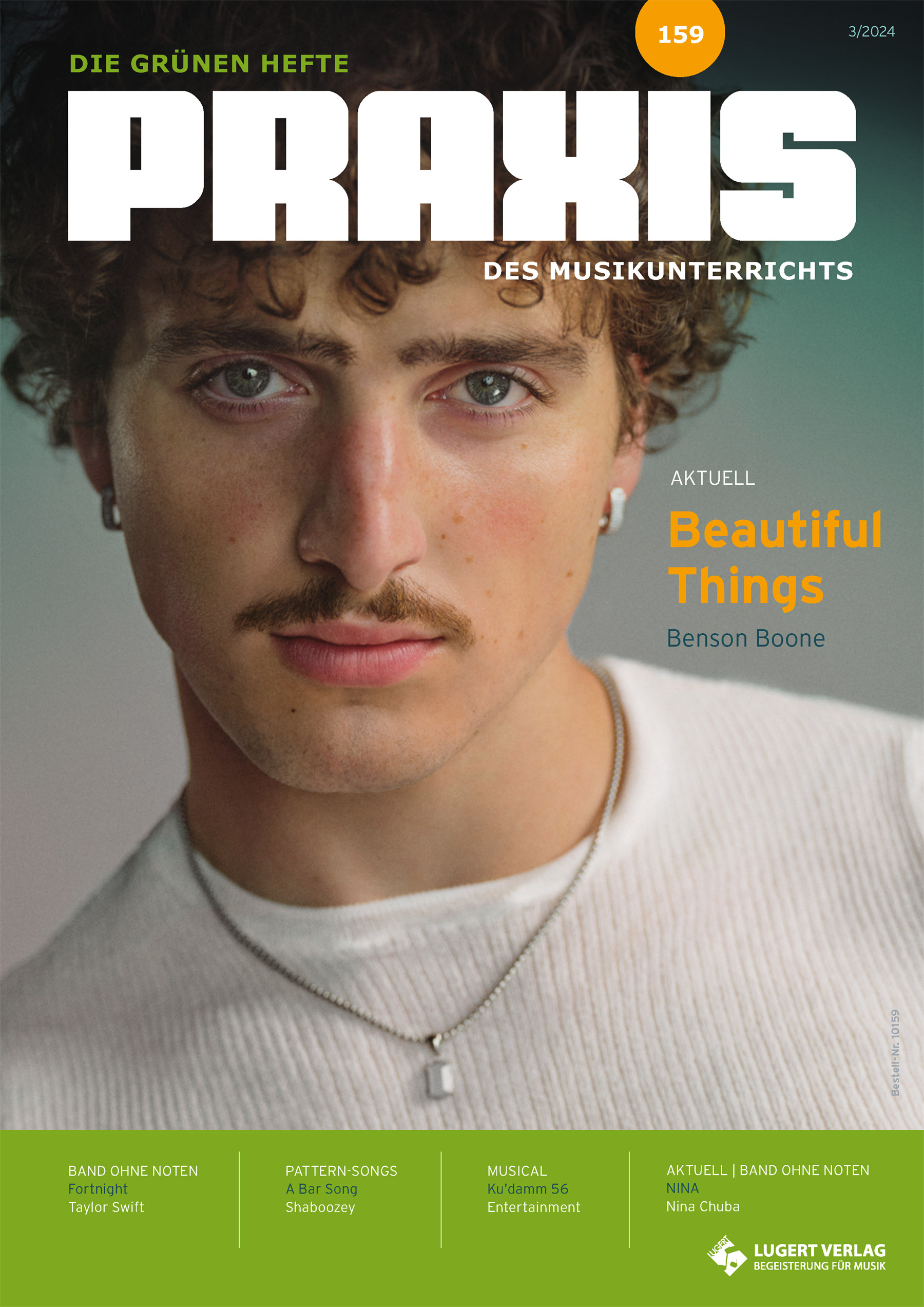 Egal ob Taylor Swift, Benson Boone, Nina Chuba oder Shaboozey: Diese Ausgabe steckt voller Hits, die Ihre Schülerinnen und Schüler gerne hören. Mit seinem Megahit „Beautiful Things“ sprengte Boone sämtliche Rekorde – also höchste Zeit, den Hit mal mit der Klasse zu performen. Musizieren Sie außerdem gemeinsam zu Taylor Swifts „Fortnight“, Nina Chubas „Nina“ oder Shaboozeys „A Bar Song“. Zu allen Songs finden Sie in dieser Ausgabe Noten, Praxismaterial und Umsetzungsideen. Für alle, die mit ihrer Klasse in die „Szenische Interpretation“ einsteigen möchten, gibt es auch noch Material zum Musical und zur Fernsehserie „Ku’damm 56“.