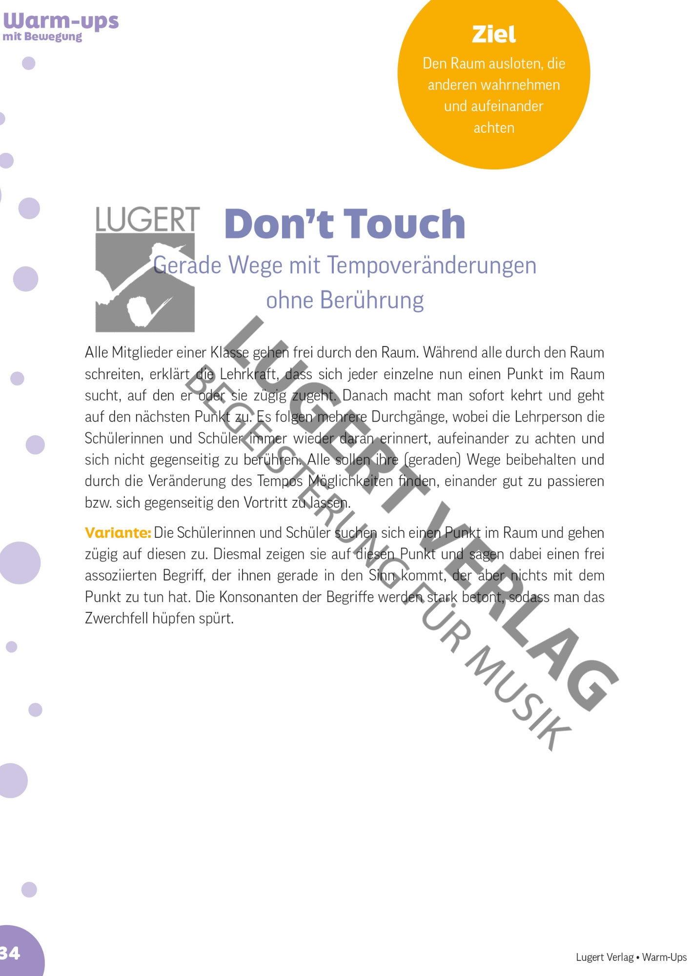 Die Warm-ups sind in die Rubriken „Rhythmus“, „Bewegung“, „Stimme“, „Hören“, „Instrument“ und „für digitale Lernumgebungen“ aufgeteilt. Sie sind vielseitig und alle in den Klassenstufen 5 bis 13 einsetzbar, denn die Warm-ups sind sehr einfach im Schwierigkeitsgrad differenzierbar oder thematisch anpassbar, wenn dieses überhaupt nötig ist.