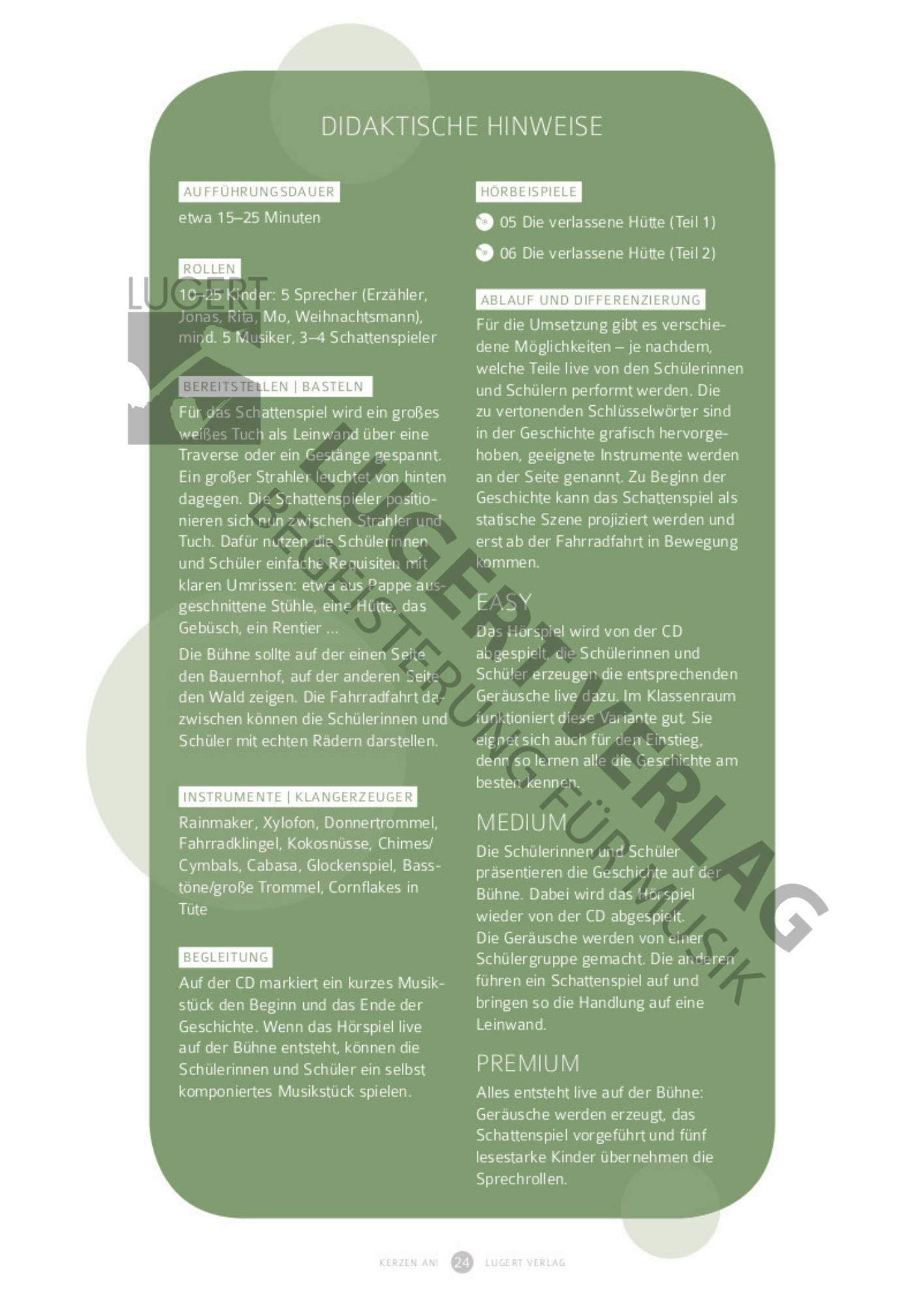 Bei diesem Produkt handelt es sich um ein Heft im Hochformat inklusive Audio-CD und zusätzlich der digitalen Version einer Zip-Datei mit allen Materialien als PDF und MP3.