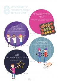 Mit dabei sind nicht nur coole und lustige neue Songs, sondern auch der Pophit „Dezember“ (Mark Forster und Stefanie Kloß) sowie Auszüge aus klassischen Weihnachtsliedern wie „Jingle Bells“, „Rudolph“ oder „Feliz Navidad“ und stimmungsvollen Klassikern wie „Hallelujah“ oder „Lass jetzt los“. Zu jedem Song gibt es den Liedtext und ein Leadsheet sowie verschiedene Ideen für die musikalische Umsetzung – von einfachen Mitspielsätzen für das Grundschulinstrumentarium über Rhythmus-Patterns und Vocals bis hin zu Bodypercussion.