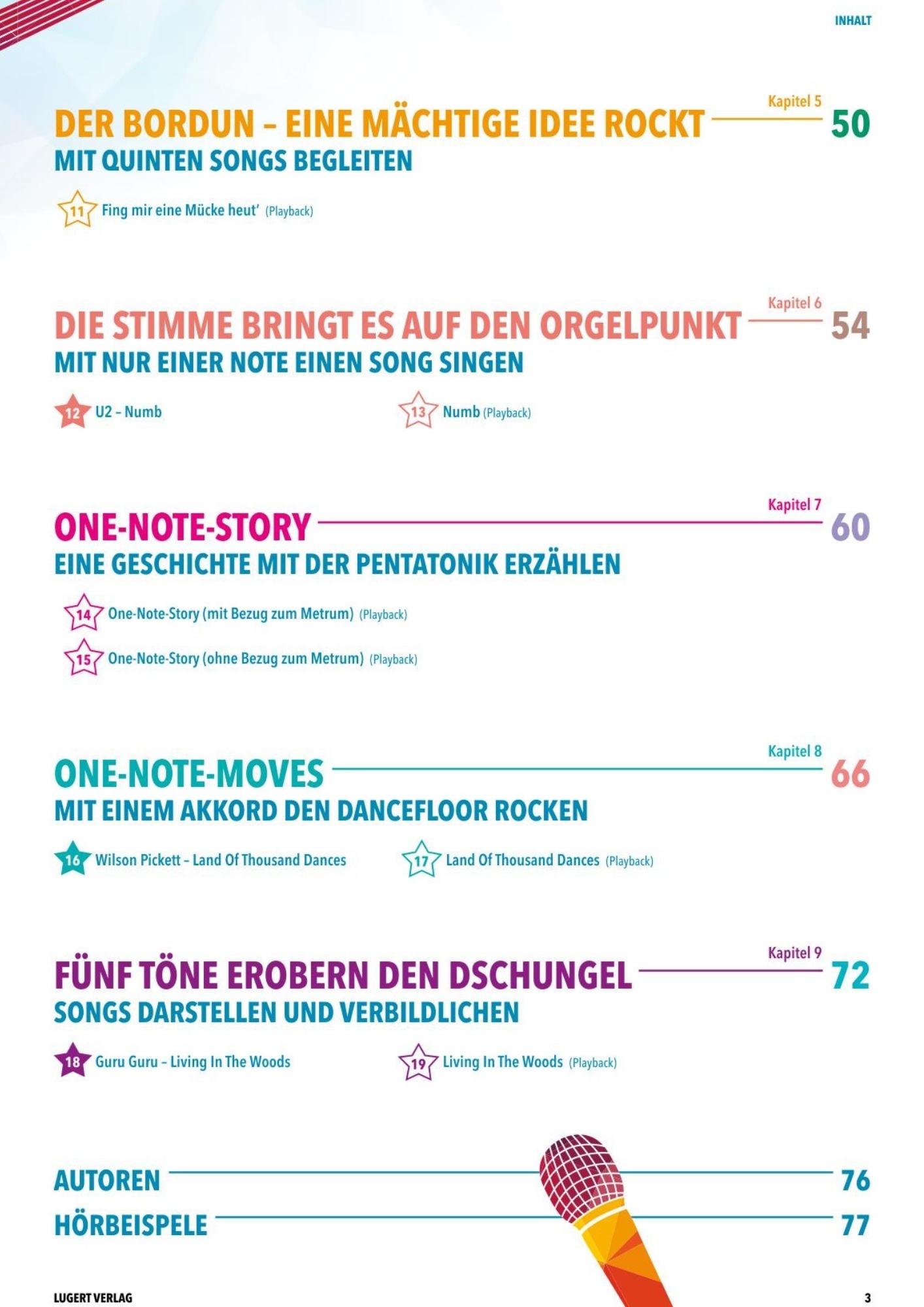 Die beiliegende CD bietet mit insgesamt 19 Songs und Playbacks genügend Material, um gemeinsam mit Ihren Schülern die Welt der Musik zu entdecken. Die Playbacks sind dabei größtenteils praxisnah gestaltet, um Ihnen und Ihren Schülern einen möglichst lebensnahen Klangeindruck zu geben.