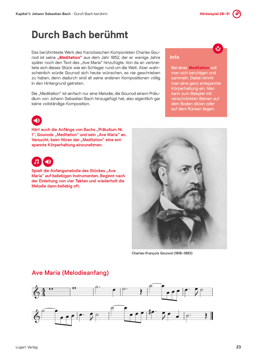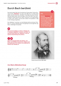 Auf modern designten Arbeitsblättern mit zahlreichen Notenbeispielen und ansprechenden Abbildungen lernen Ihre Schüler viele Details über das Leben und Werk von Johann Sebastian Bach. Dank leicht verständlicher Texte erhalten Ihre Schüler schnell einen Zugang zum Leben des Komponisten, der nicht nur als musikalisches Genie, sondern vor allem als Mensch präsentiert wird.
