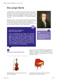 Auf modern designten Arbeitsblättern mit zahlreichen Notenbeispielen und ansprechenden Abbildungen lernen Ihre Schüler viele Details über das Leben und Werk von Ludwig van Beethoven. Dank leicht verständlicher Texte erhalten Ihre Schüler schnell einen Zugang zum Leben des Komponisten, der nicht nur als musikalisches Genie, sondern vor allem als Mensch präsentiert wird.