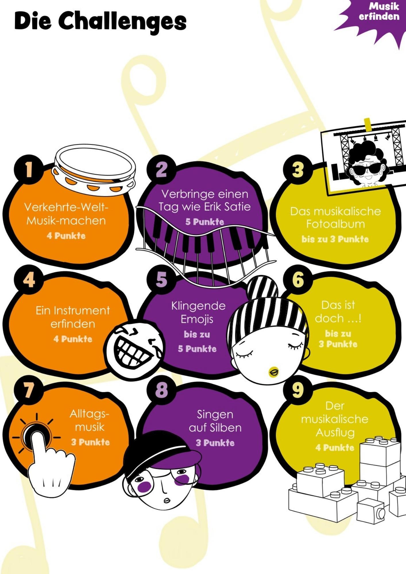Mit diesen 9 kreativen Herausforderungen tauchen Ihre Schülerinnen und Schüler ein in die Welt der eigenen Musik: Wie klingen Emojis für mich? Welche Klänge kommen aus einem antiken Fotoalbum? Und was für Musik bleibt mir nach einem Ausflug im Kopf? Jede Challenge befeuert die Kreativität der Schülerinnen und Schüler und ist per Arbeitsblatt direkt im Unterricht oder zu Hause umsetzbar.