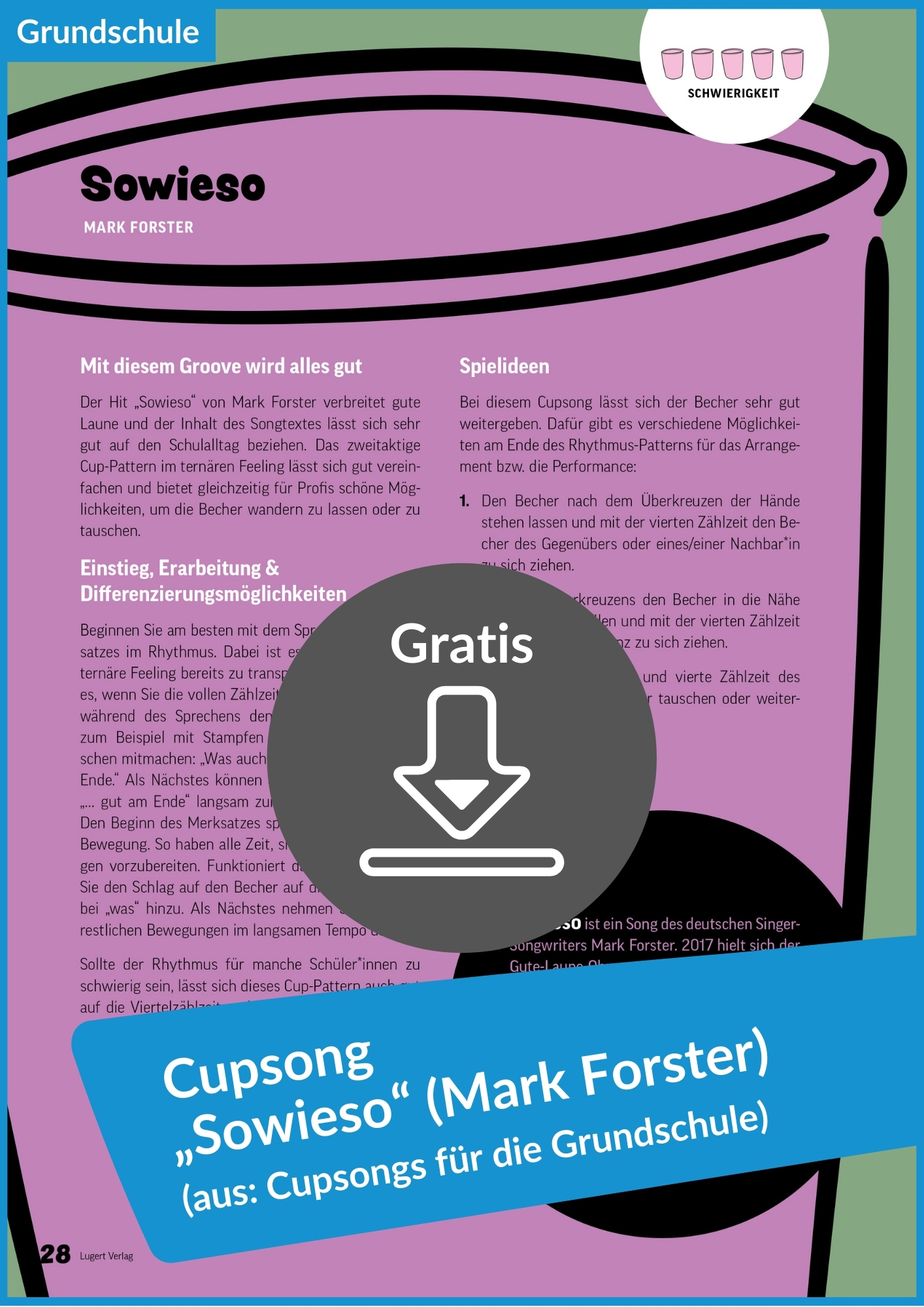 Gratis-Download: Cupsong „Sowieso“ von Mark Forster (aus: Cupsongs für die Grundschule)