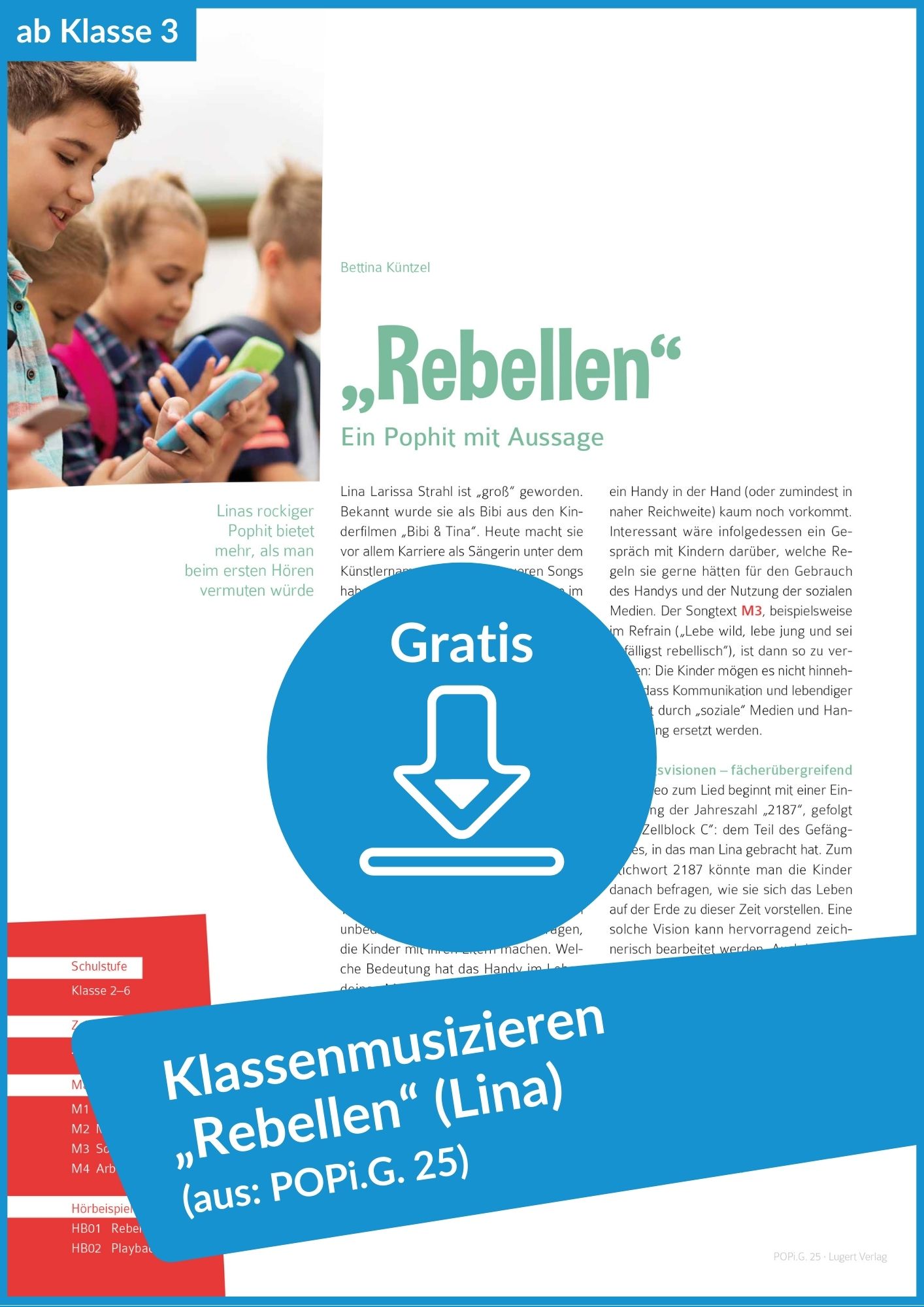 Handynutzung und Social Media sind heutzutage bei Grundschüler*innen ein großes Thema. Holen Sie das Thema mit dem Song „Rebellen“ von Lina (die als „Bibi“ aus den Kinderfilmen „Bibi & Tina“ bekannt wurde) in Ihren Musikunterricht.