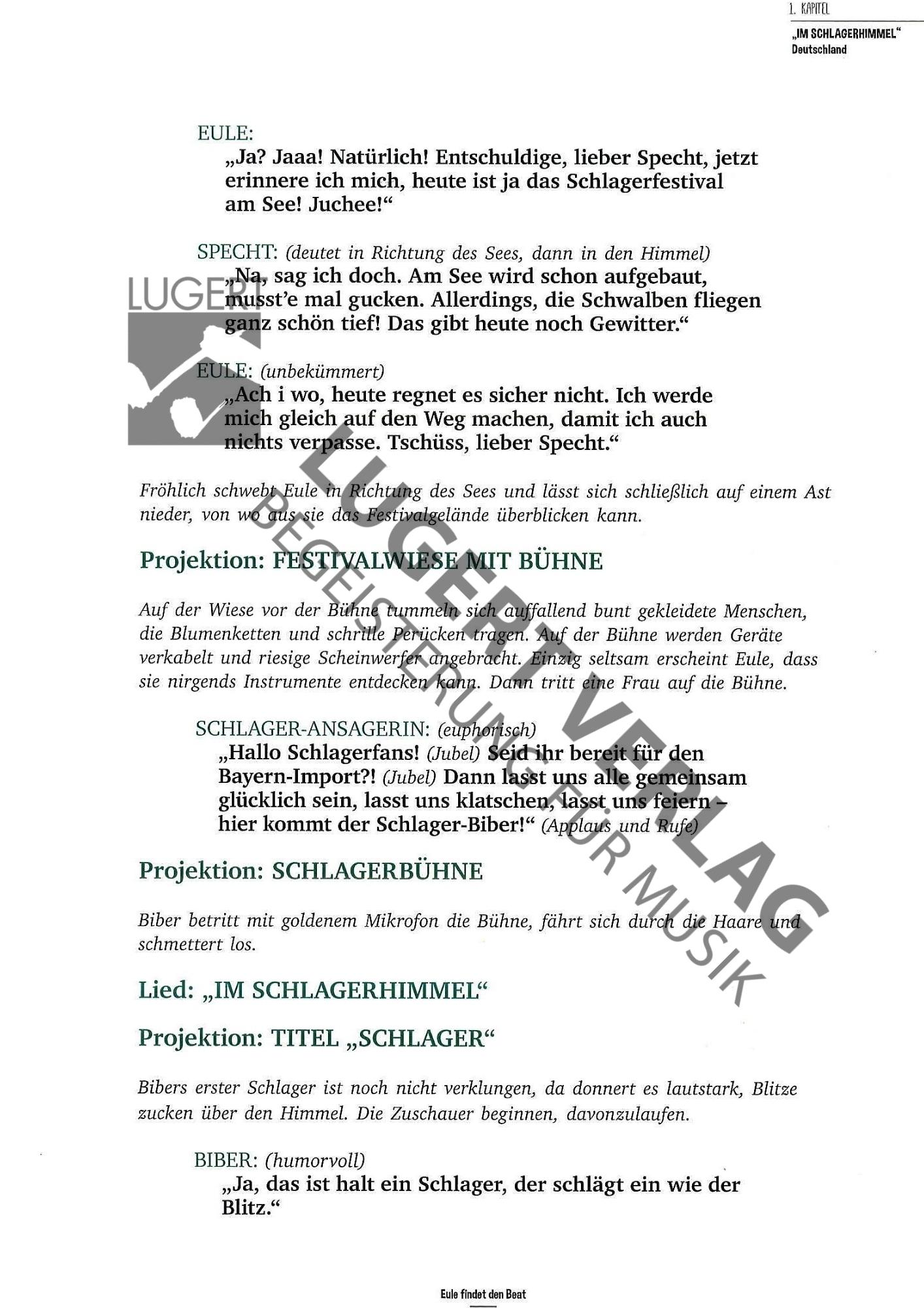 „Eule findet den Beat – auf Europatour“ beinhaltet umfassendes Aufführungsmaterial in acht Szenen. Darin enthalten sind das Libretto mit detaillierten Regieanweisungen, Leadsheets und Texte zu den Songs, Klavierarrangements und Vorlagen für Tiermasken. Mithilfe der Projektionen entsteht schnell und einfach ein stimmungsvolles Bühnenbild für Ihre Aufführung.
