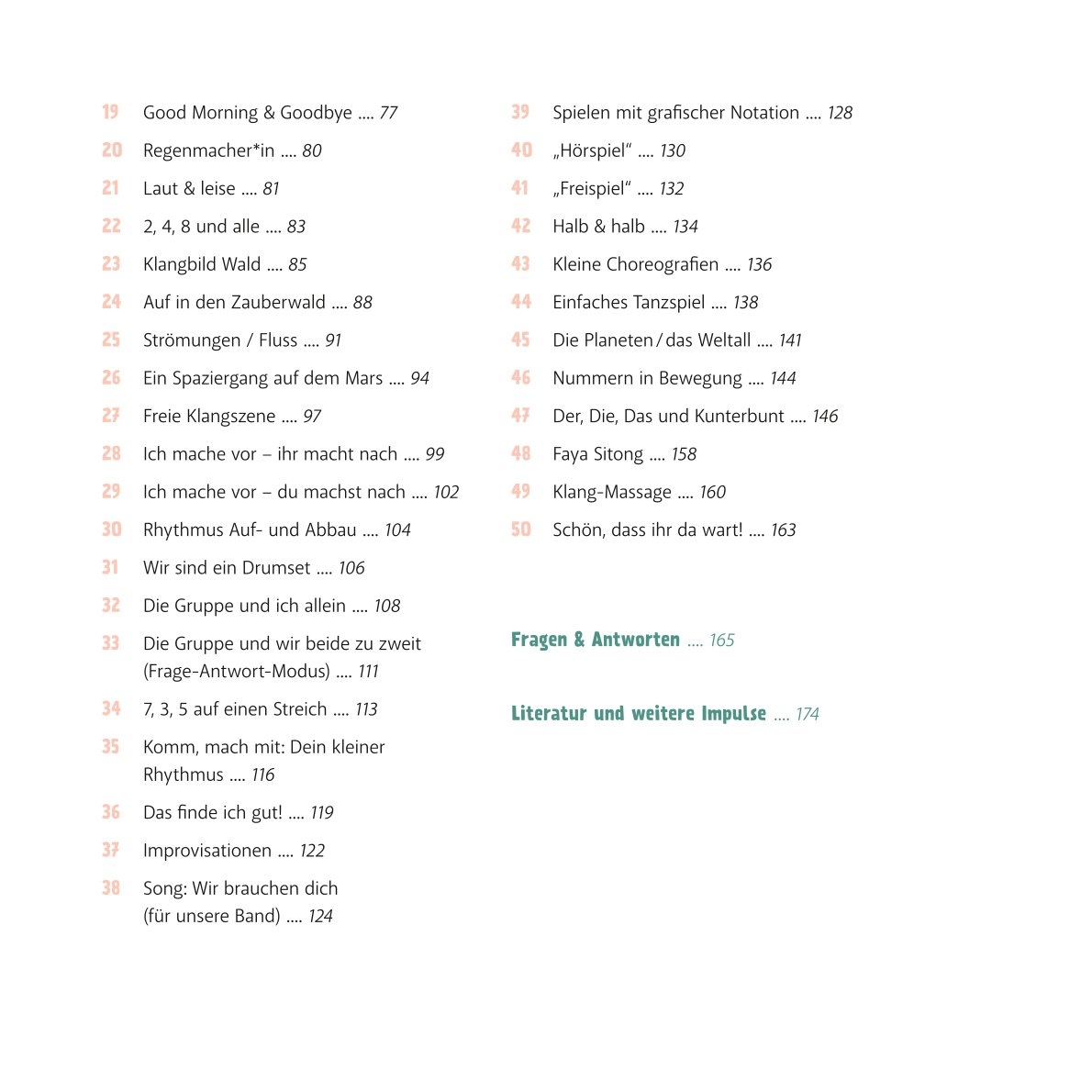- 50 musikalische Aktionen – vom kurzen Warm-up bis hin zum kleinen Projekt
