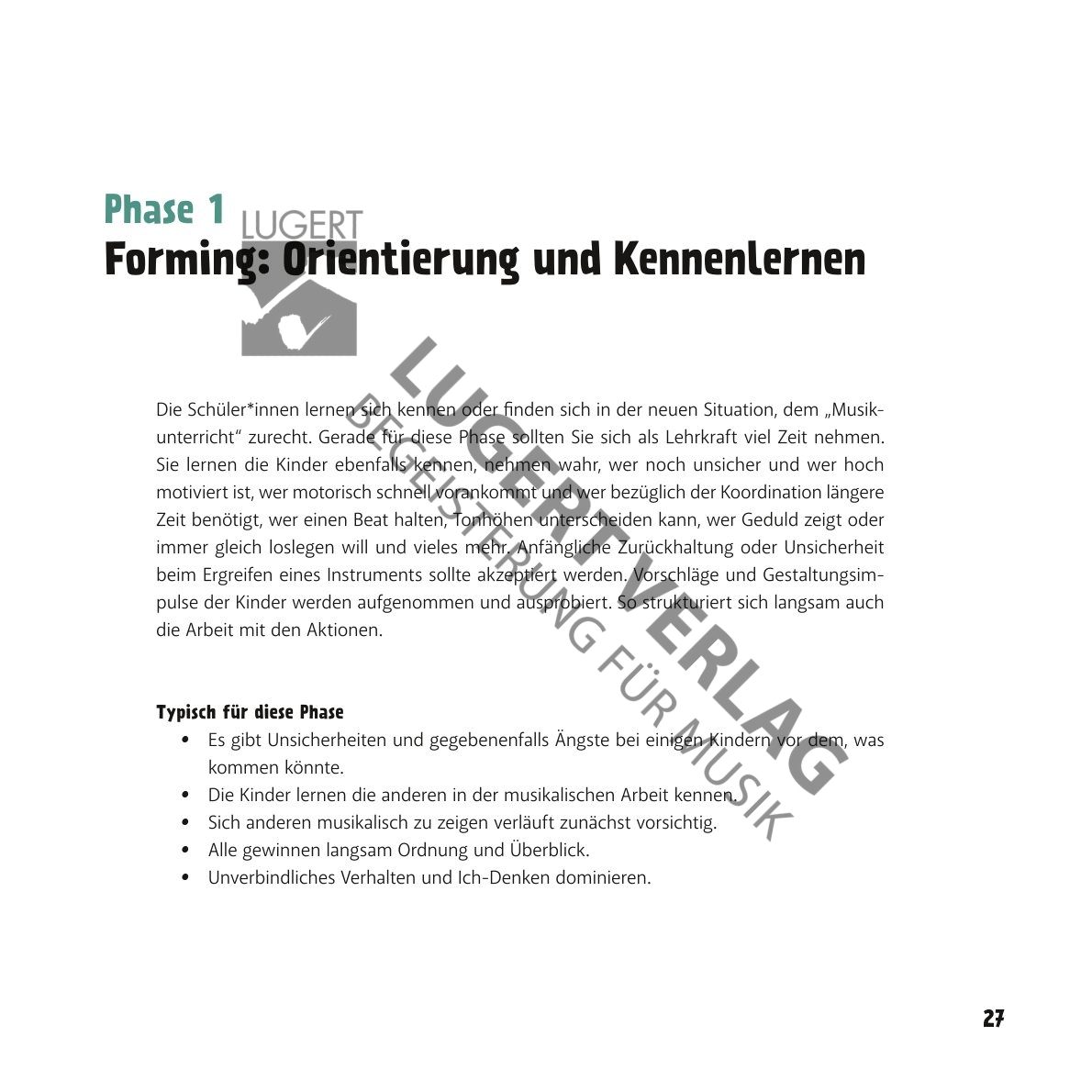 - ein Grundlagen-Kapitel mit wertvollen Impulsen zur Teamförderung mit Musik, Gruppenprozessen und einem gelungenen Miteinander im (Musik)unterricht