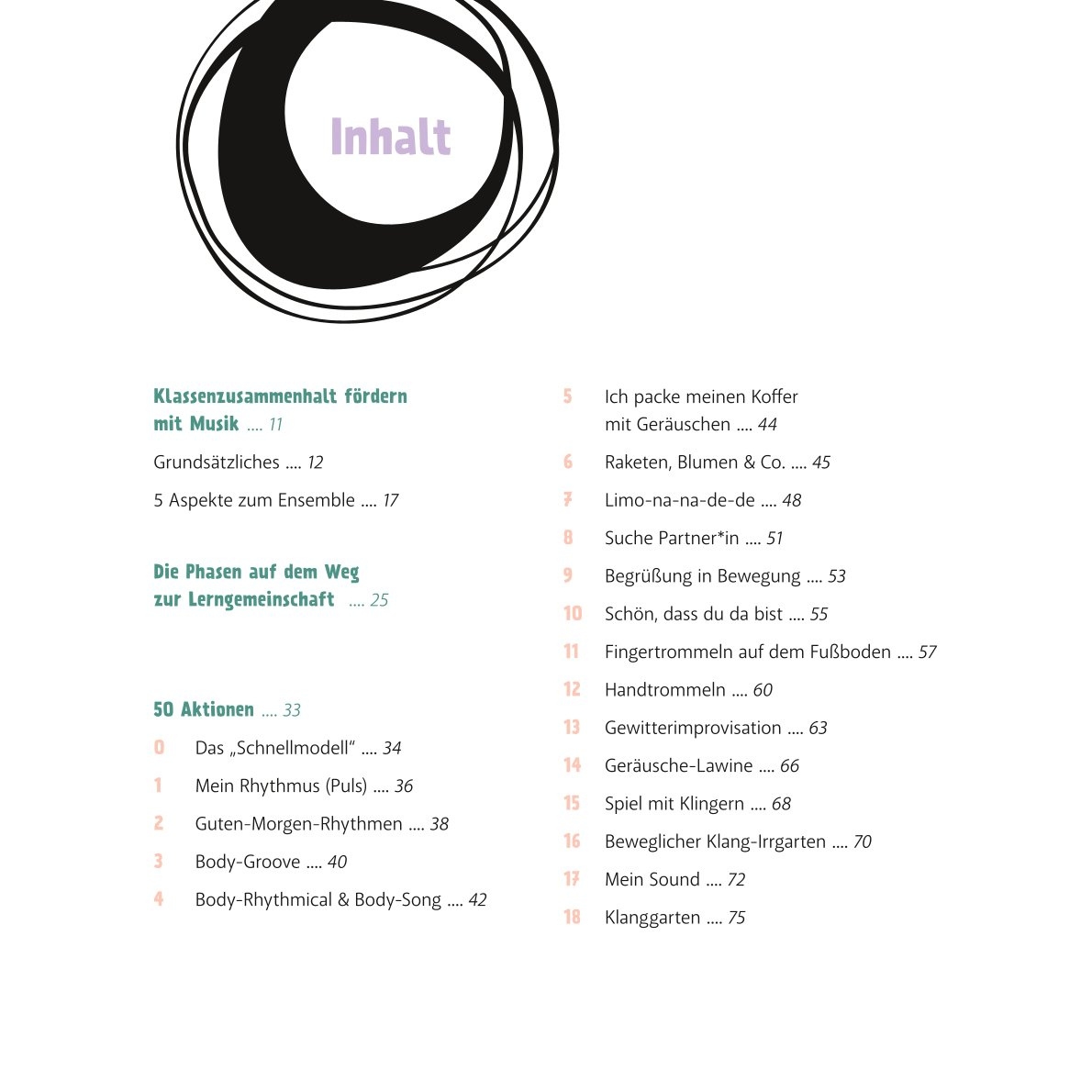 - ein Grundlagen-Kapitel mit wertvollen Impulsen zur Teamförderung mit Musik, Gruppenprozessen und einem gelungenen Miteinander im (Musik)unterricht