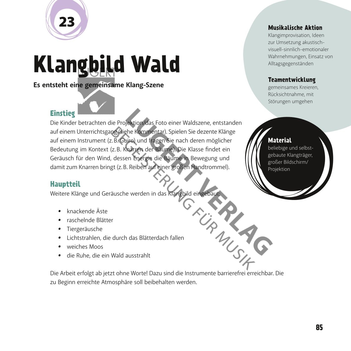 Viele der musikalischen Aktionen in diesem Buch benötigen wenig Ausstattung und eignen sich auch losgelöst zum Einstieg oder für zwischendurch. Sie unterrichten fachfremd? Dann werden Sie hier garantiert auch fündig.