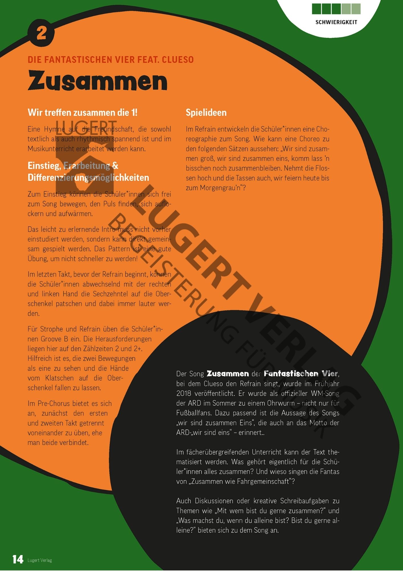 Der Autor Steffen Merkel zeigt Ihnen in kurzen Video-Tutorials, wie Sie die Bodypercussion-Ideen zu den einzelnen Songs umsetzen können. Hier sehen Sie das Video-Tutorial zum Hit „Zusammen“ (Die Fantastischen Vier feat. Clueso), das Sie über einen Link im Heft bzw. mit Ihrem Download erhalten: