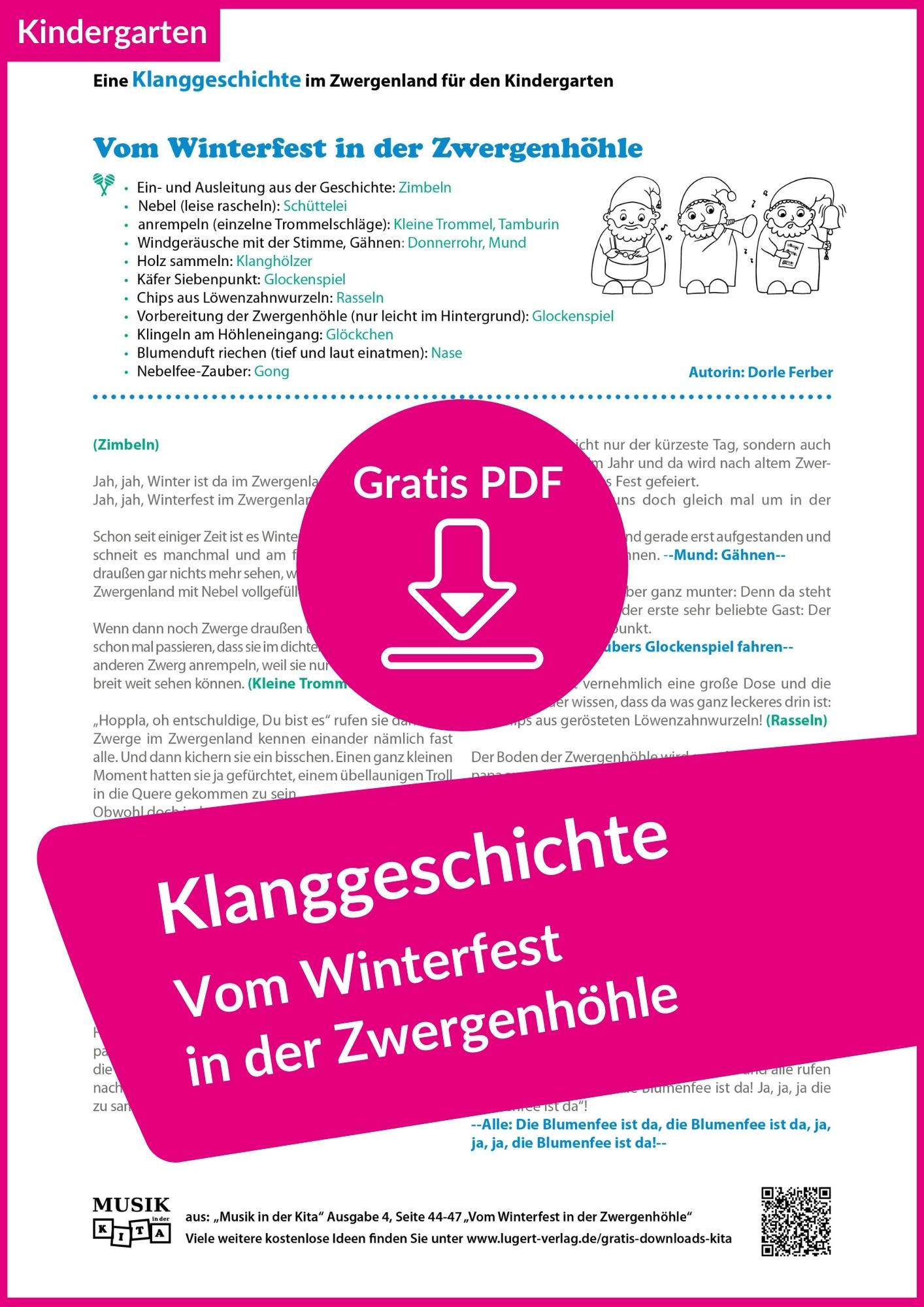 PDF zum Ausdrucken (kostenlos): Klanggeschichte „Ein Fest im Winter bei den Zwergen“
