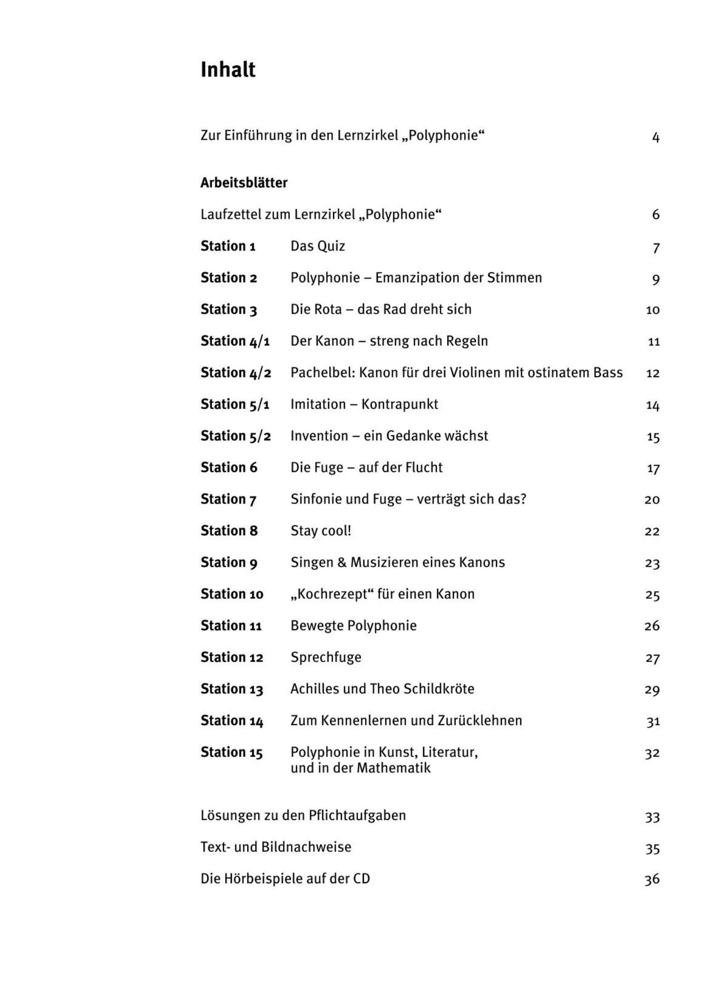 Das Heft „Polyphonie“ bietet einen gangbaren Mittelweg und vielfältige Methoden zur Lösung der Aufgaben über Höranalyse, Lückentexte, Zuordnen von Bildern und Arbeiten mit Notenmaterial. Selbstverständlich finden Sie in diesem Heft – wie in allen anderen Heften der Reihe auch – Stationen zum gemeinsamen Musizieren, Singen, Tanzen und Rezitieren, die sich auf die Thematik des theoretischen Teils beziehen. Jede Station ist eine in sich abgeschlossene Einheit, sodass mit jeder begonnen werden kann. Aus dem großen Zirkel lassen sich problemlos kleine Zirkel je nach Unterrichtskonzeption zusammenstellen. Das Material ist auch für den Frontalunterricht verwendbar.