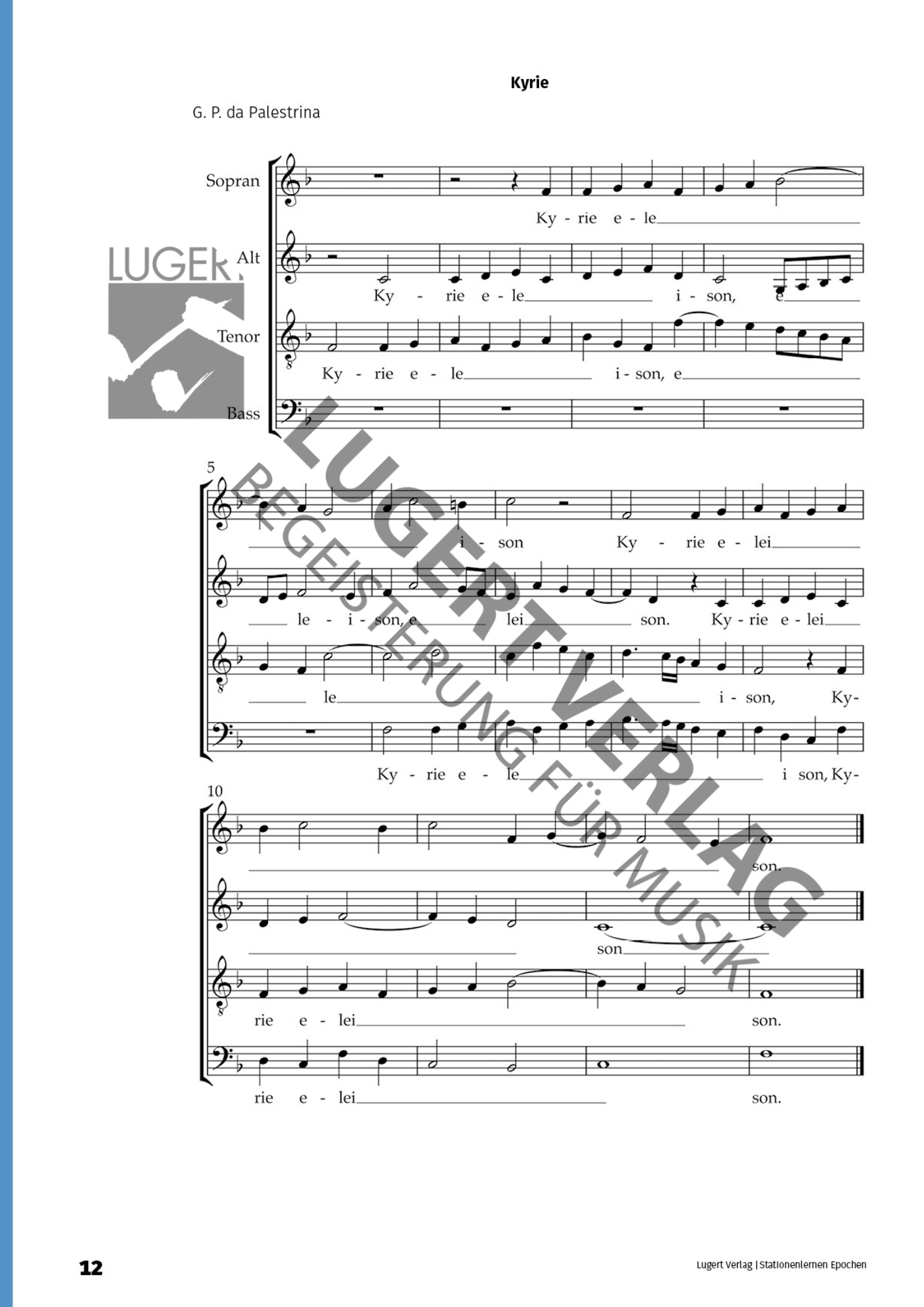 - eine Analyse polyphoner Chormusik der Renaissance (z. B. Palestrina),