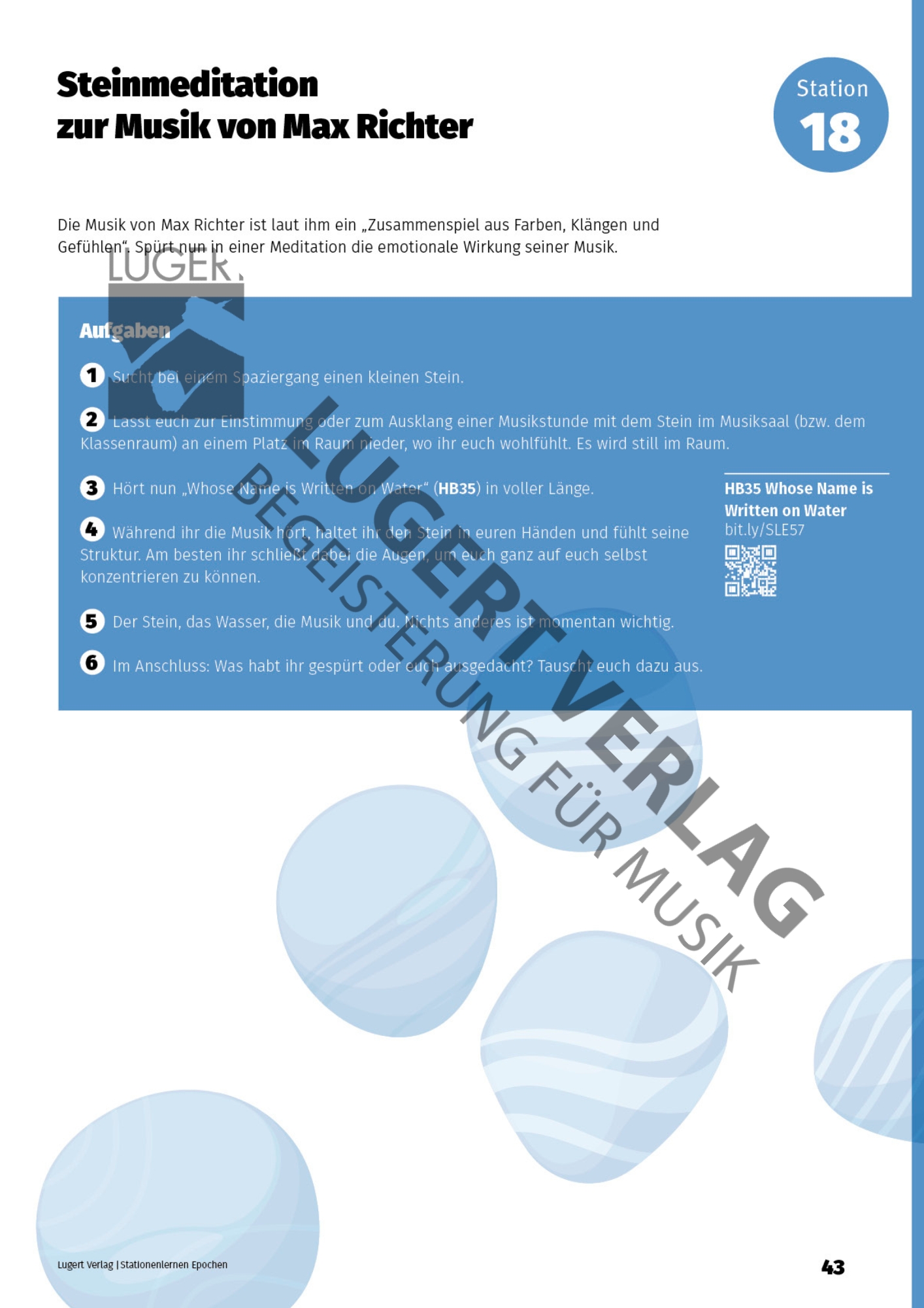 - eine Klangmeditation mit einem selbstgewählten Stein zur Musik von Max Richter („Whose Name is Written on Water“).