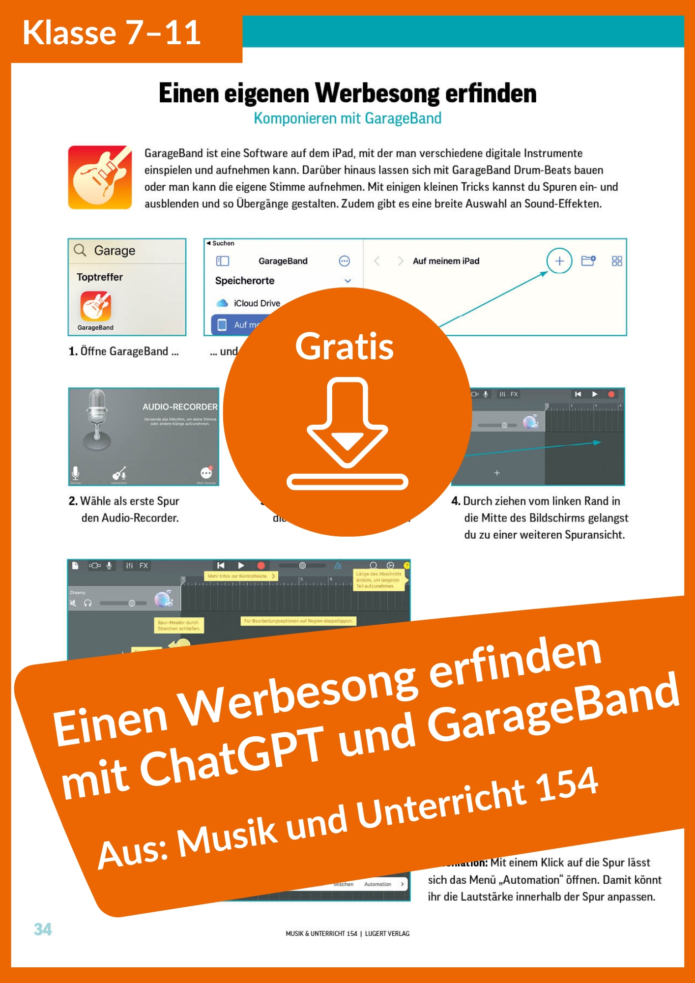 Gratis-Download: Einen eigenen Werbesong erfinden – Komponieren mit ChatGPT und Garage Band (aus Musik und Unterricht 154)