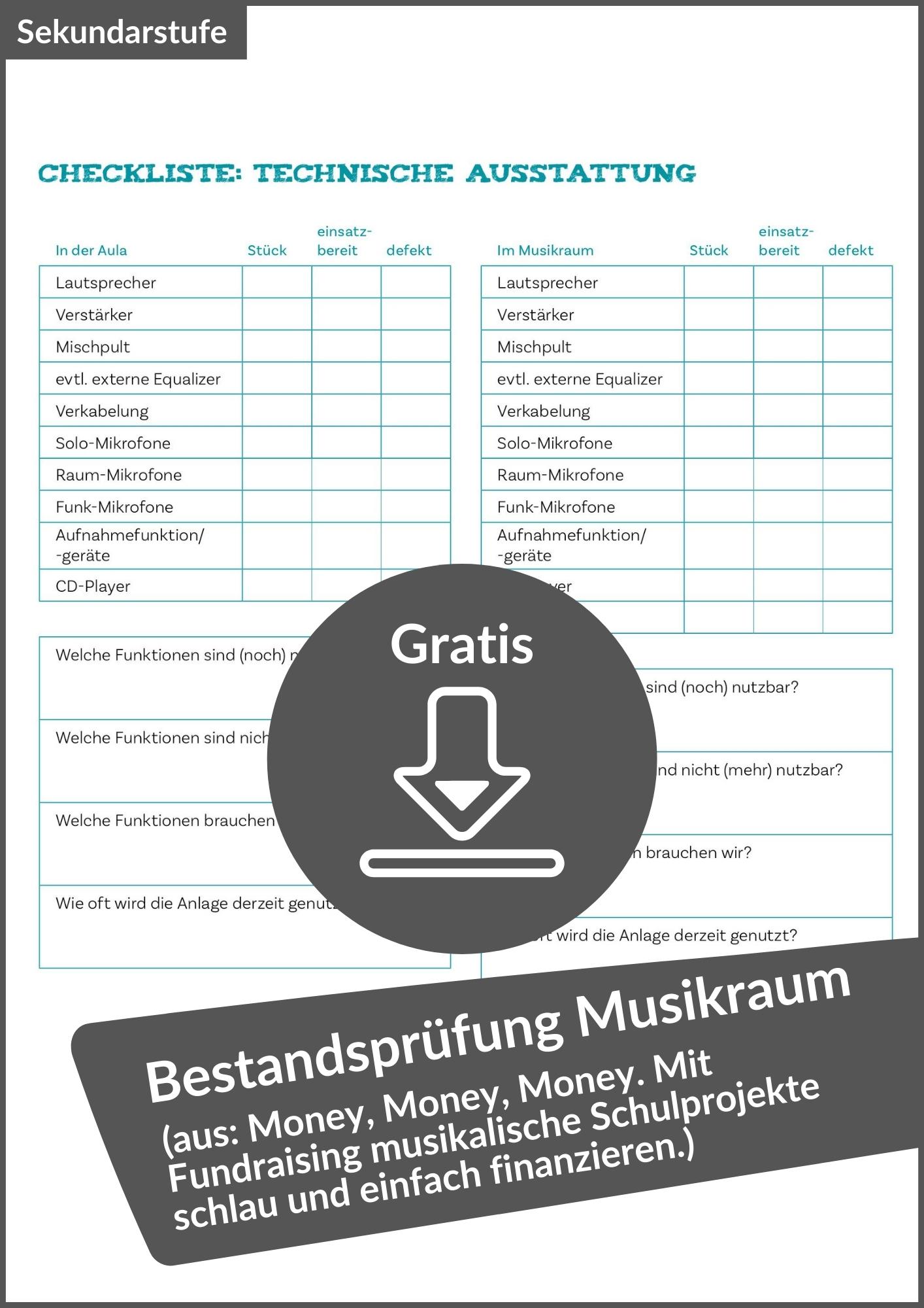 Gratis-Download „Meinen Bestand prüfen“ (aus: „Money, Money, Money! Mit Fundraising musikalische Schulprojekte schlau und einfach finanzieren“)