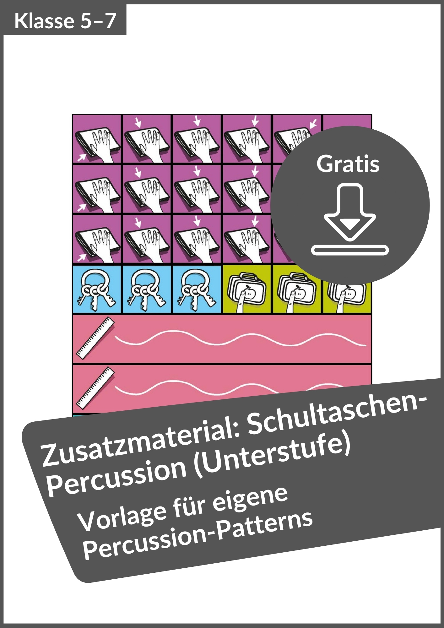Dieser Download wurde als Ergänzung zu dem Material „Schultaschen-Percussion. 12x Rhythmus mit Alltagsgegenständen von Klassik bis Pop für die Unterstufe„ entwickelt.