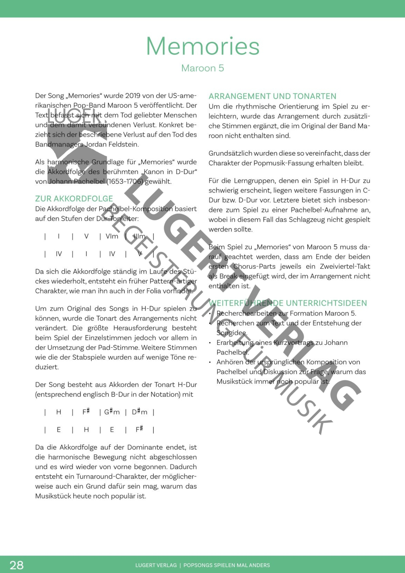 Die Verwendung von Patterns als Gestaltungselement in musikalischen Abläufen ist ein ursprünglicher Kern von moderner Popmusik. Dies erleichtert den Zugang für Schüler*innen und bietet mehr Möglichkeiten für eine aktive Teilnahme am Klassenmusizieren. Mit diesem Material erhalten Sie für Ihre Mittelstufenklassen gleich 11 solcher Pattern-Arrangements zu bekannten Popsongs der letzten 70 Jahre – von „Get Up, Stand Up“ (The Wailers) über „In The Air Tonight“ (Phil Collins) bis zu „abcdefu“ (Gayle). Zu jedem Arrangement gibt es außerdem weiterführende Unterrichtsideen, Rechercheaufgaben sowie die Orginal-Songs und Hörbeispiele der Patterns als Ganzes und im sukzessiven Aufbau.