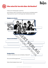 Wie wäre es zu Beginn der Einheit mit einem kleinen Wissensquiz zu den Beatles und den bekannten Songs? Auch während des Films können Aufgaben erledigt werden, wie zum Beispiel ein Song-Bingo, sodass garantiert keine Langeweile aufkommt. Im Anschluss an den Film gibt es noch weiteres Material für eine Partnerarbeit oder auch selbständig zu bearbeitende Aufgaben.