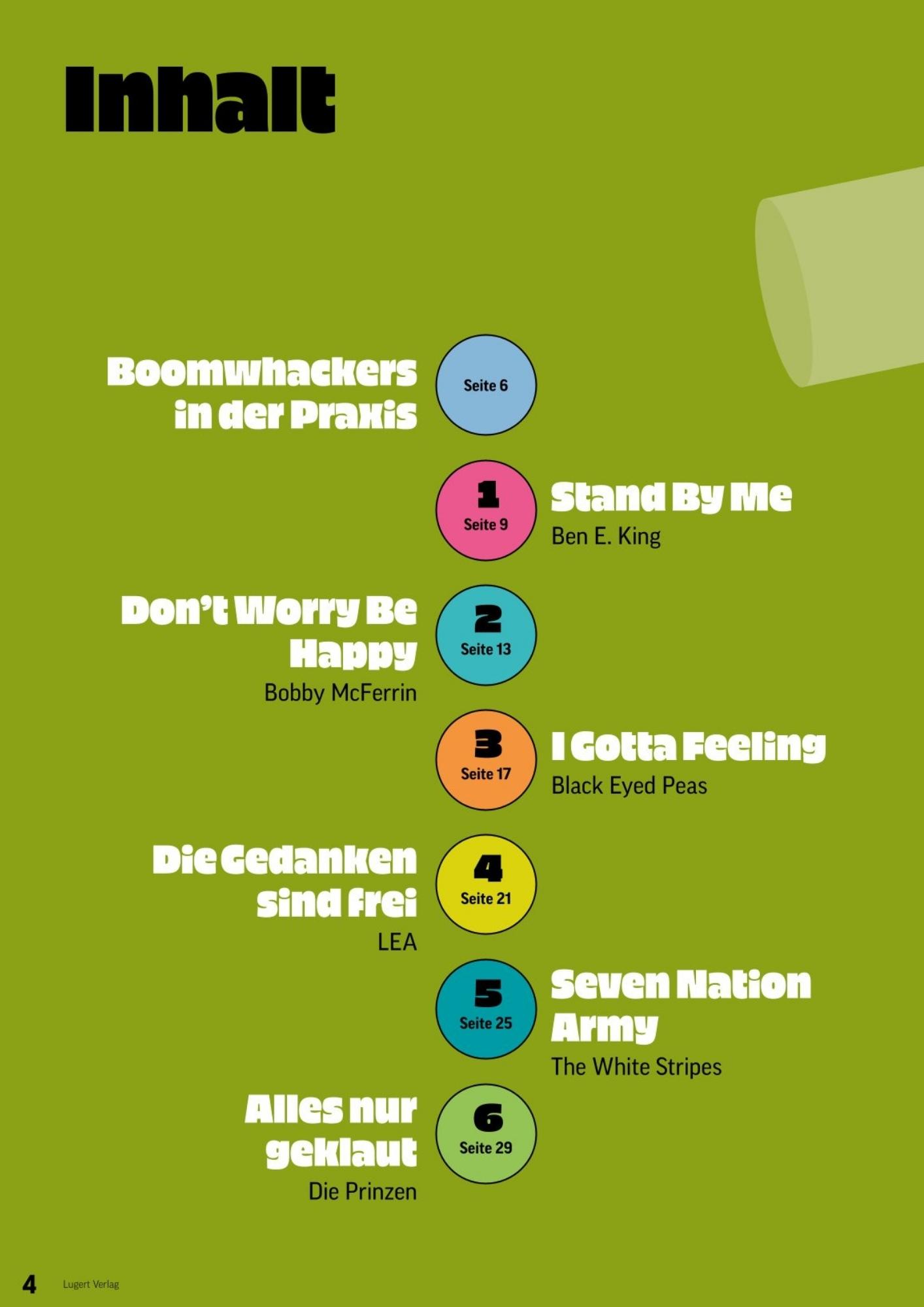 Die Boomwhackers-Arrangements mit übersichtlichen und differenzierten Begleitpatterns sind unkompliziert umsetzbar – im Unterricht, zwischendurch oder bei Schulaufführungen. Die Video-Tutorials zu den Original-Songs geben Ihnen eine Vorstellung, wie das Ergebnis aussehen kann.