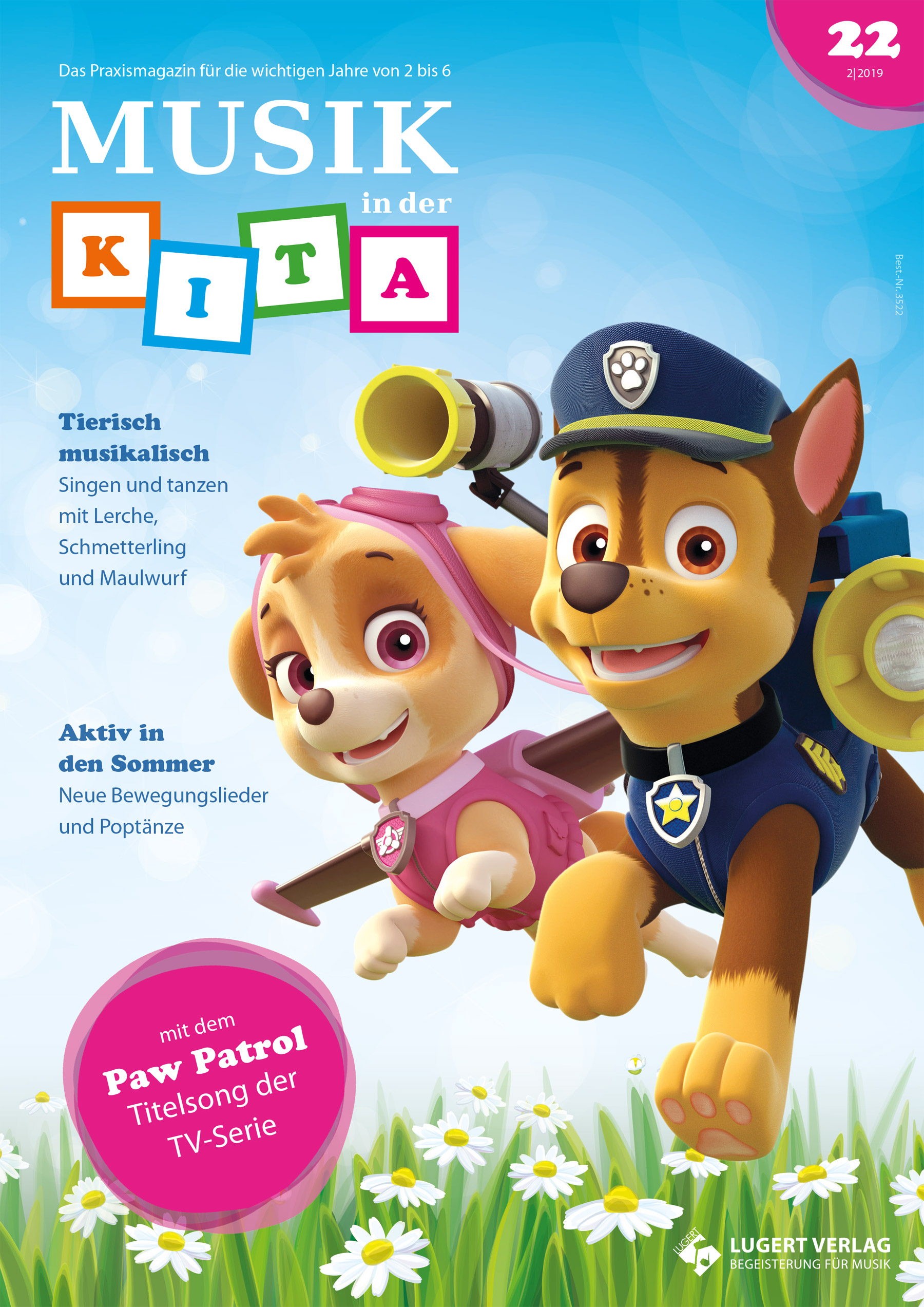 Endlich geht es wieder raus: Der Frühling ist in vollem Gange und die Natur erwacht zum neuen Leben. Da kommen musikalische Spielideen zu Schmetterling, Maulwurf, Biber und Co. doch wie gerufen! Brandaktuell sind auch die hilfsbereiten Vierbeiner von Paw Patrol – mit dem Titelsong der bekannten Zeichentrickserie begeistern Sie mit Sicherheit alle Kinder. Auch mit dabei: ein buntes Seifenblasen-Spiel zur Förderung der Teamfähigkeit.